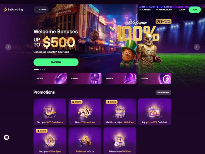 BetAnySports has rebranded as BetAnything. Along with a new name comes a broader platform that includes sports, casino games, lotteries, and horse racing all in one place. The focus remains on providing players in the USA and Canada with more ways to play, bet, and enjoy securely.